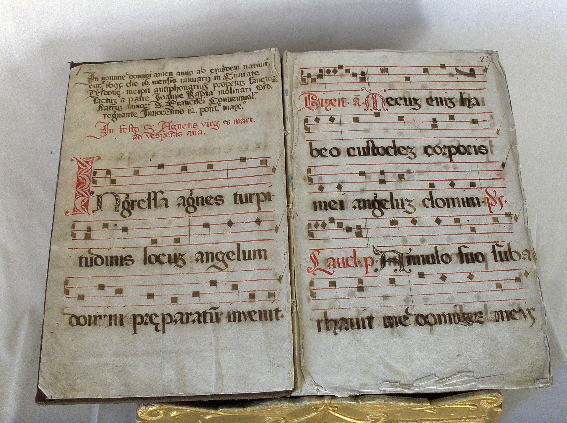 Opera del Conventuale Minore Giovanni Battista Molinari, eseguito nel convento francescano di Tortona nel 1695, si tratta di una trascrizione di un testo medioevale di canti dedicati a santi.