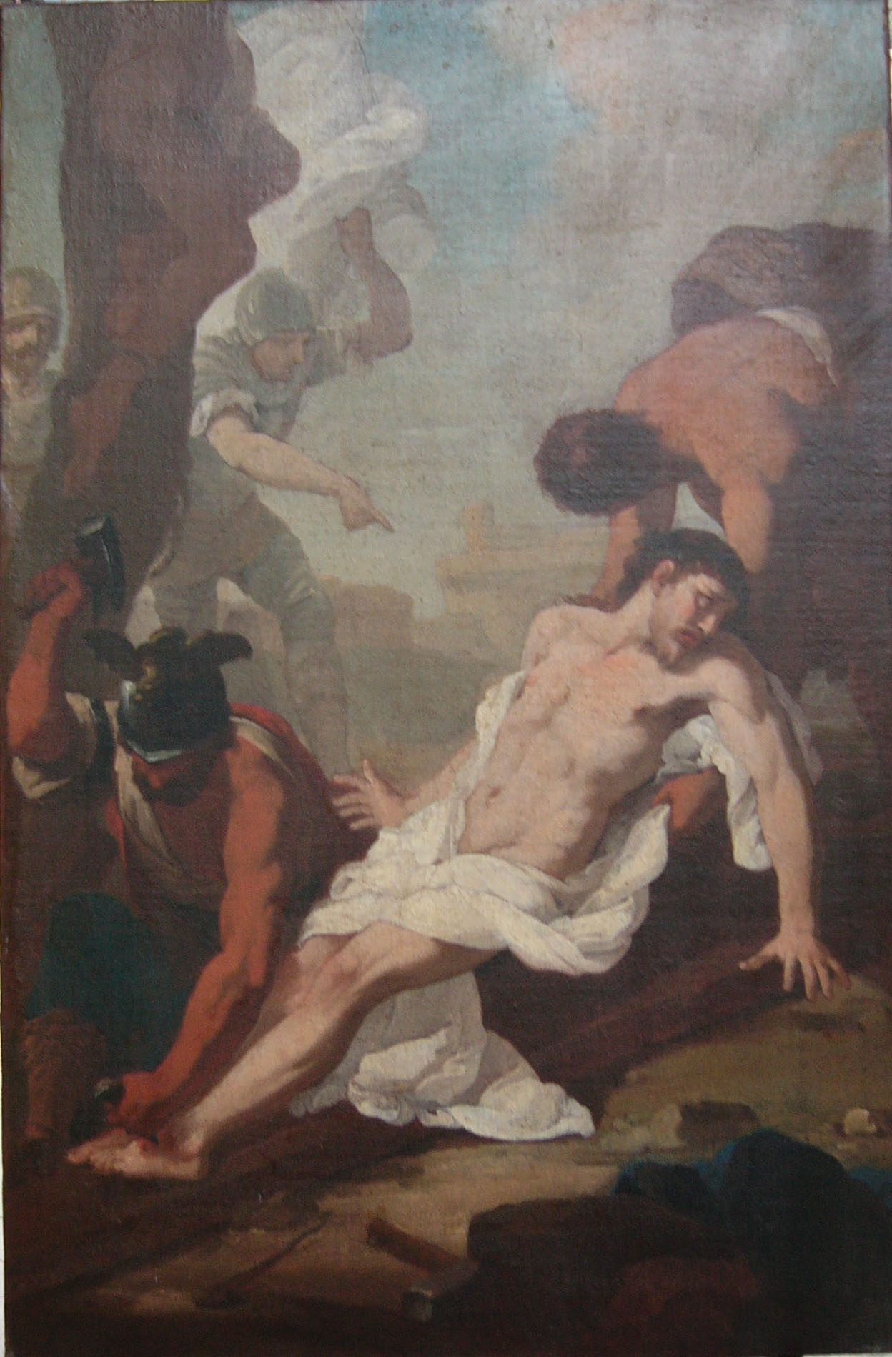 L'autografia di Pietro Fancelli e la datazione è attestata dalla firma emersa durante il restauro Petrus Fancelli Pinxit Anno 1796, posta nella parte posteriore della tela raffigurante il Trasporto di Cristo al sepolcro. Tale scritta, non visibile ad occhio nudo, è stata individuata attraverso un'ispezione ai raggi ultravioletti.