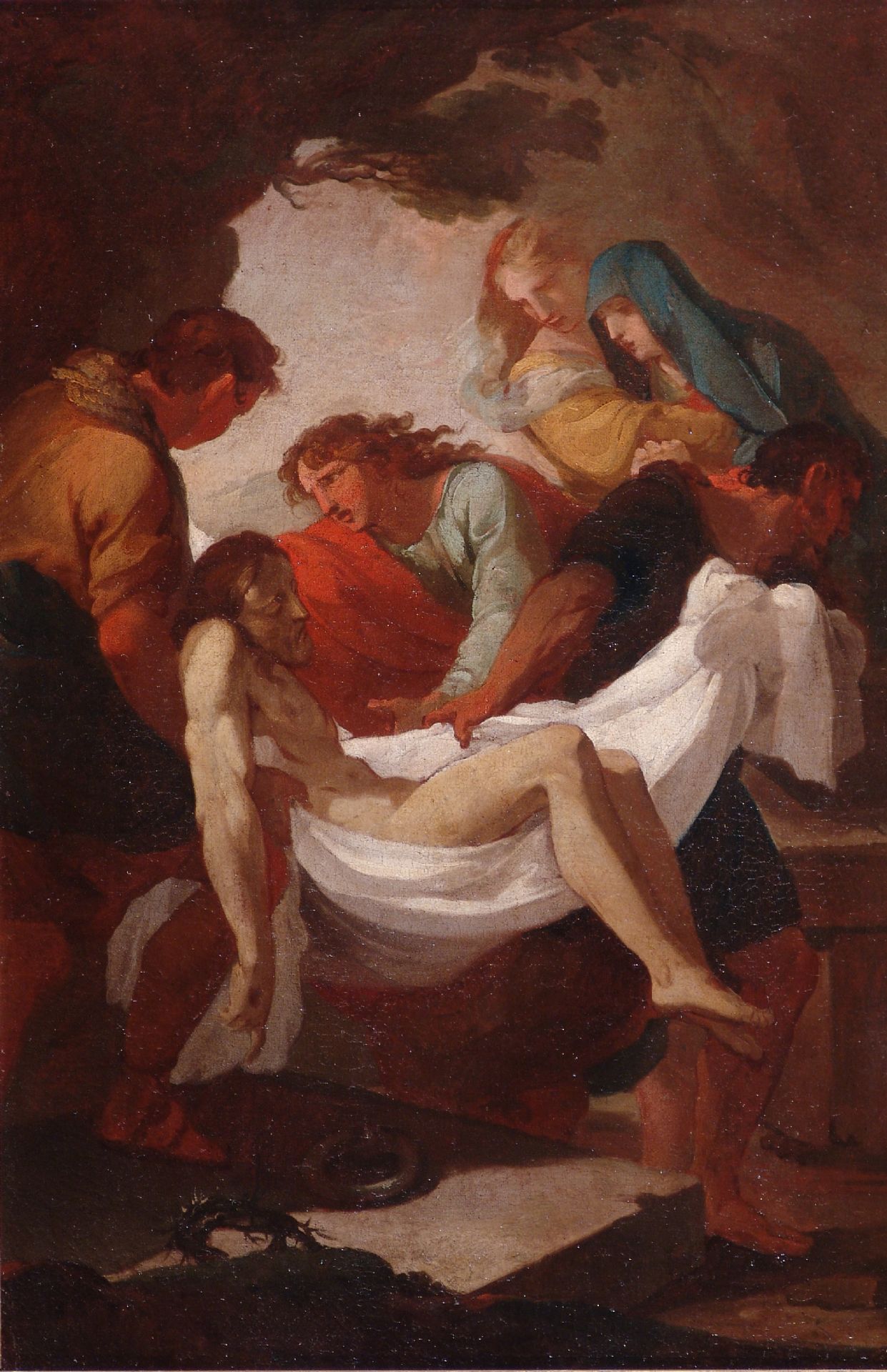 L'autografia di Pietro Fancelli e la datazione è attestata dalla firma emersa durante il restauro Petrus Fancelli Pinxit Anno 1796, posta nella parte posteriore della tela raffigurante il Trasporto di Cristo al sepolcro. Tale scritta, non visibile ad occhio nudo, è stata individuata attraverso un'ispezione ai raggi ultravioletti.