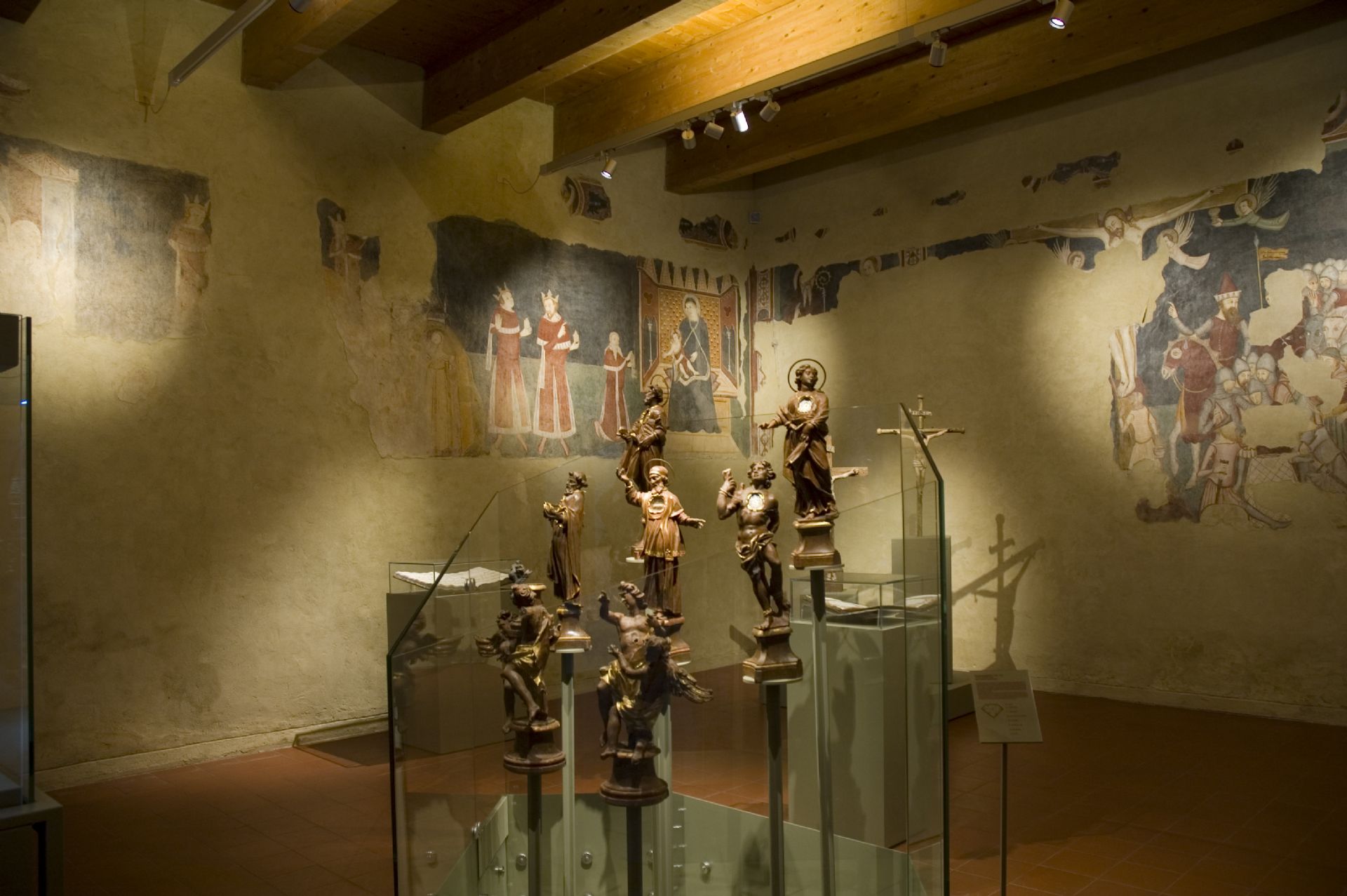 Nelle vetrine sono esposti alcuni reliquiari lignei, dipinti e dorati, appartenenti ad un unico complesso, parzialmente esposto, pervenuto da Roma il 14 ottobre 1713 per donazione del vicegerente Domenico Zauli e del cardinale Gaspare di Carpegna, dietro supplica del padre francescano Giuseppe Maria Bruni di Cassine ed in dotazione alla chiesa di San Francesco. Tale donazione era rilasciata a corredo delle spoglie di Sant’Urbano Martire, venerate in chiesa.
